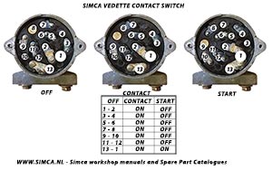 A layout and working of the Simca Vedette contact switch: